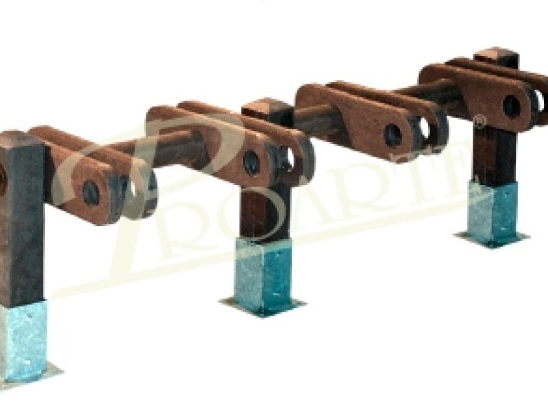 APARCABICIS INFINITE EN PLÁSTICO RECICLADO. Aparcabicis fabricado en plástico 100% reciclado y reciclable. Estructura fabricada postes cuadrado, pilares estructurales de 9 x 9 cm de sección, e interiores del conjunto de 12,5 x 3,5 cm de sección y de 9 cm de diámetro. Conjunto con una capacidad de 4 plazas. Dimensiones del conjunto 150 largo x 35 ancho x 50 alto cm (separación de 9 cm entre los arcos).