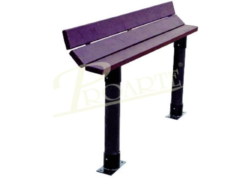 APOYO ISQUIÁTICO PLÁSTICO RECICLADO. Apoyo isquiático fabricado en plástico 100% reciclado y reciclable. Estructura formada por 2 postes de sujeción y revestimiento de perfiles de 10 x 3 cm. Tornillería y herrajes de acero cincado. Dimensiones del conjunto 150 largo x 29 ancho x 87 altura cm (libre sobre el nivel del terreno).