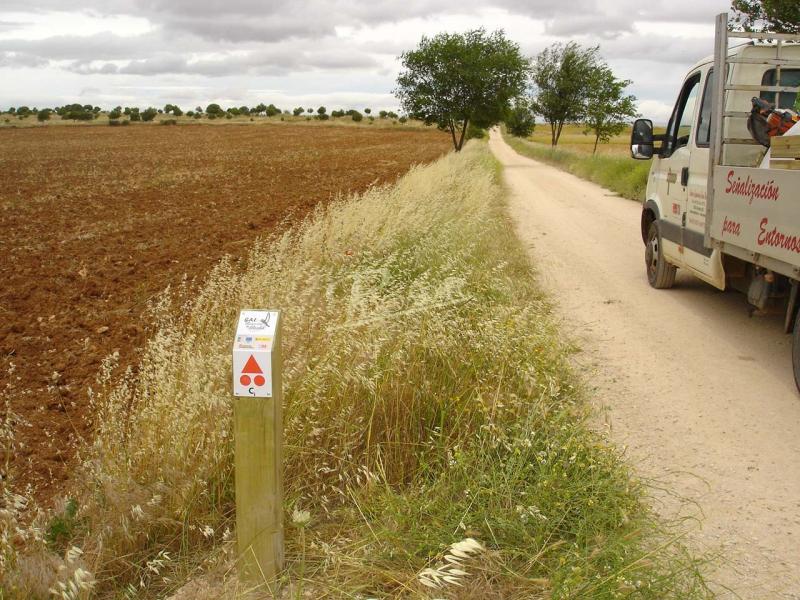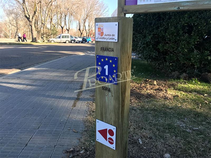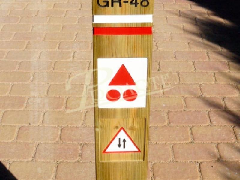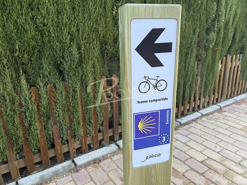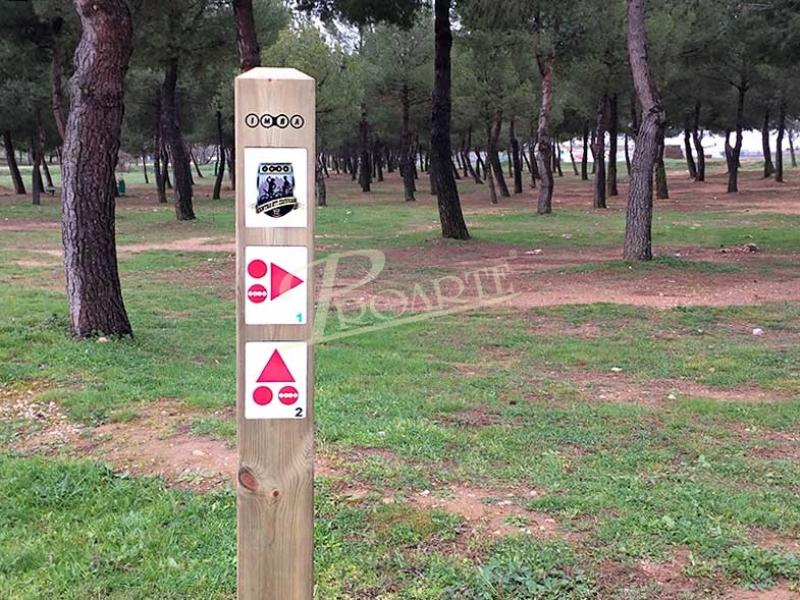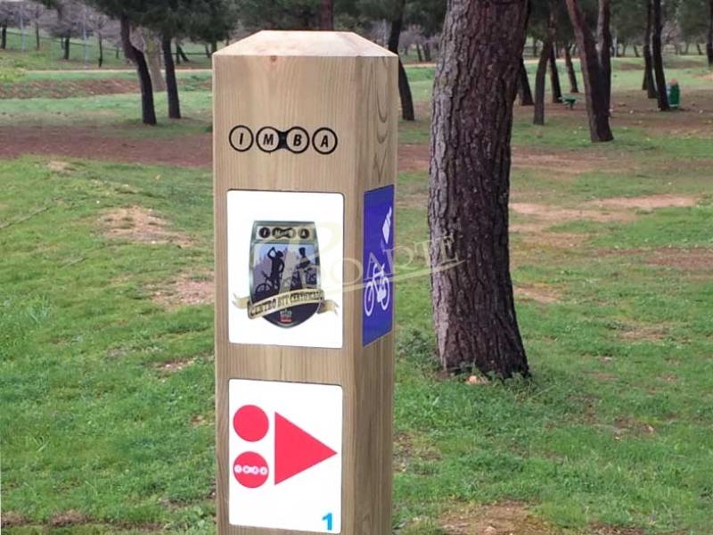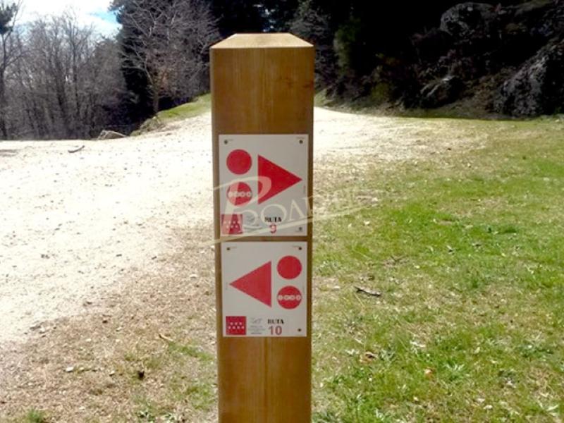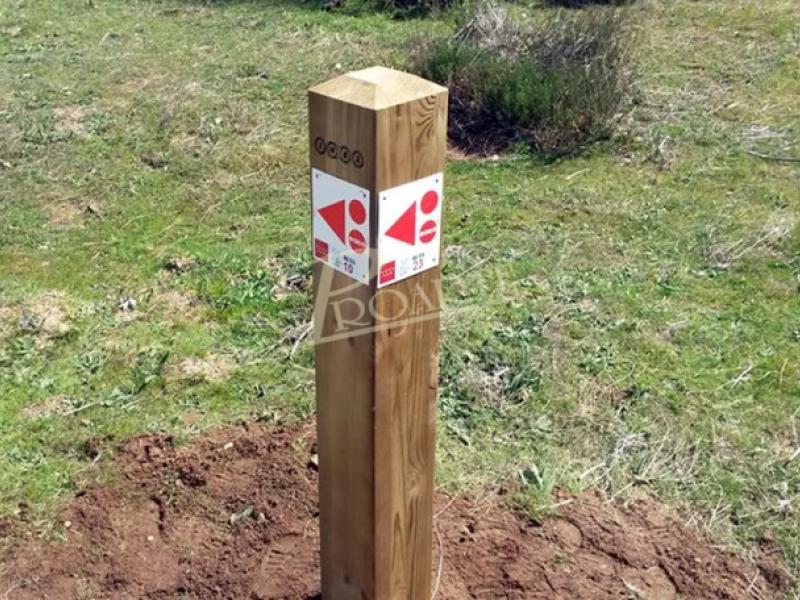 Baliza fabricada en madera para exteriores tratada riesgo IV. Poste de 14 x 14 cm de sección.