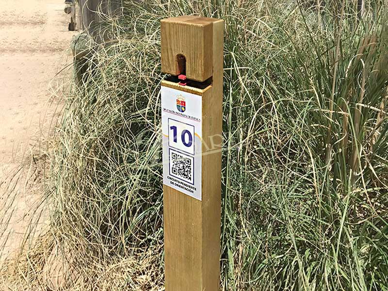Baliza fabricada en madera para exteriores tratada riesgo IV.