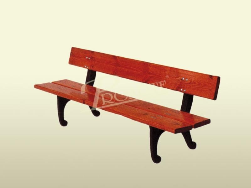 Banco fabricado con madera tropical y estructura metálica. Formado por tablas de madera tropical barnizada con lasur y pies de fundición dúctil acabados con oxirón. Tornillería de acero cincado.