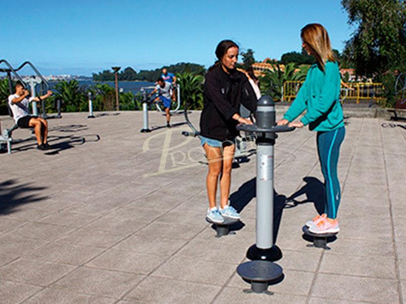 Fabricado en acero pintado al polvo. Según norma EN 16630, no requiere suelo que amortigüe los impactos según ensayo HIC de la norma EN 1176.