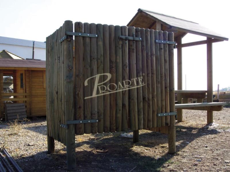 Estructura formada por medio rollizos o tabla; recinto cerrado con puerta o abierto en forma de U (sin puerta).