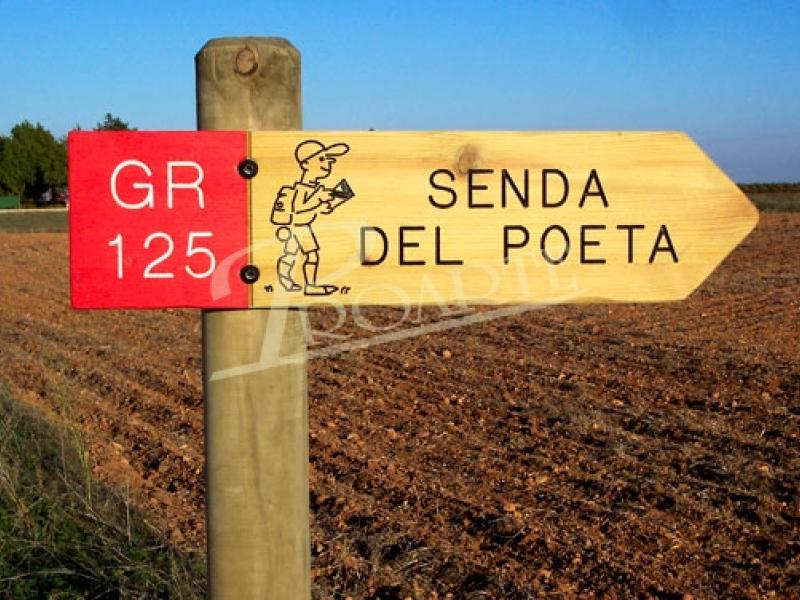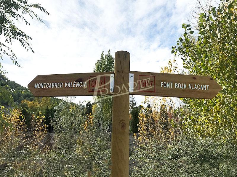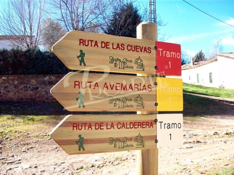 Señalización para senderos y rutas homologadas, rutas BTT, etc. Apta para cualquier temática: patrimonio natural, urbano, cultural, ornitológico, ecuestre, arqueológico o etnográfico.