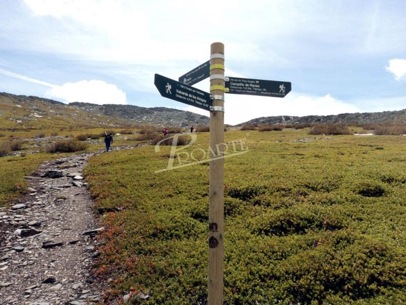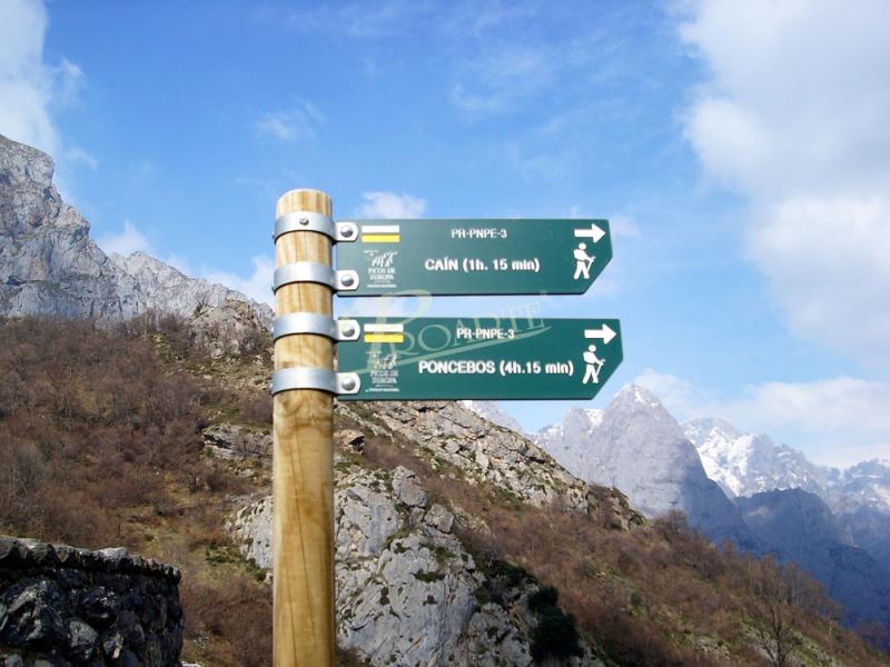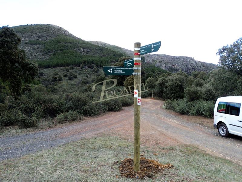 Señalización para senderos y rutas homologadas, rutas BTT, etc. Apta para cualquier temática: patrimonio natural, urbano, cultural, ornitológico, ecuestre, arqueológico o etnográfico.