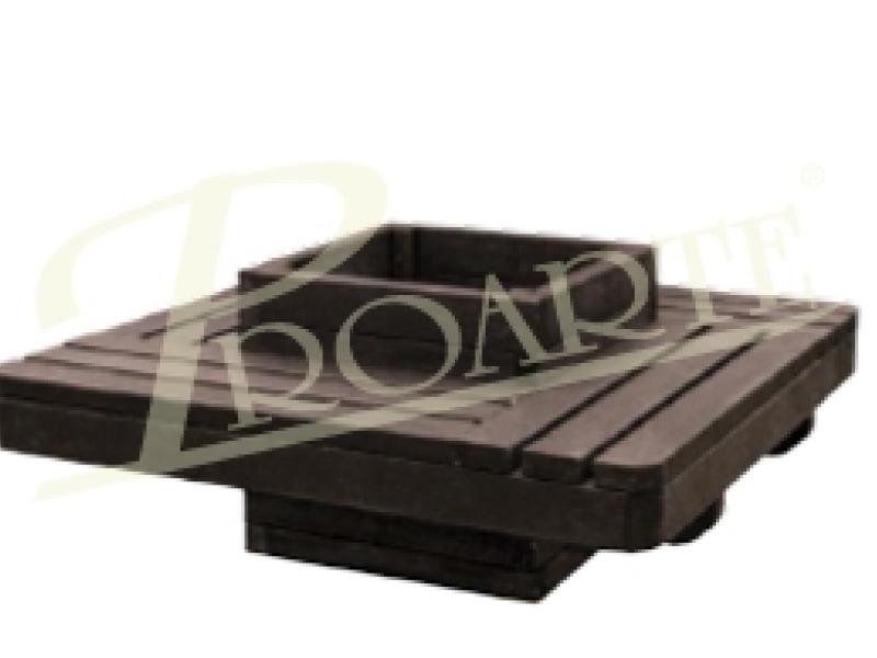 JARDINERA AITANA PLÁSTICO RECICLADO. Jardinera con bancos adosados fabricada en plástico 100% reciclado y reciclable. Estructura jardinera formada por revestimiento de perfiles de 10 x 3 cm de sección, y 4 postes interiores de refuerzo. Bancos perimetrales formados por revestimiento de perfiles de 12,5 x 3,5 cm. Acabado color marrón. Tornillería de acero cincado. Dimensiones del conjunto 148 largo x 148 ancho x 60 altura cm.