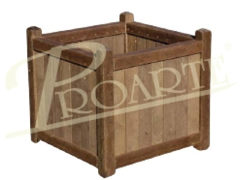 JARDINERA LUIS PLÁSTICO RECICLADO. Jardinera de sección cuadrada fabricada en plástico 100% reciclado y reciclable. Estructura formada por revestimiento de perfiles de 7 x 3 cm de sección, marcos y 4 patas de sujeción que dejan elevada la base, contribuyen a una mejor transpiración del recipiente y facilita el desplazamiento del conjunto. Acabado color marrón. Tornillería de acero cincado.