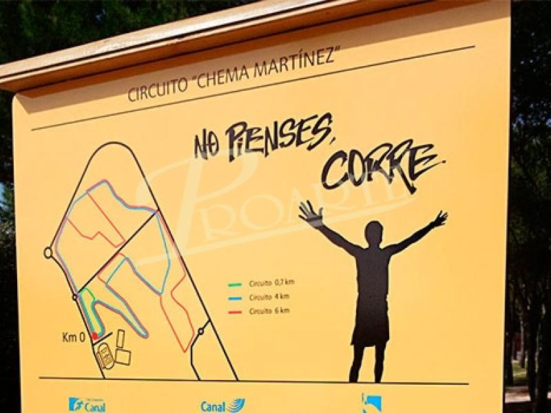 Ideal como panel de inicio de itinerarios saludables, senderos o rutas de cualquier temática: patrimonio natural, urbano, cultural, ornitológico, ecuestre, arqueológico o etnográfico.