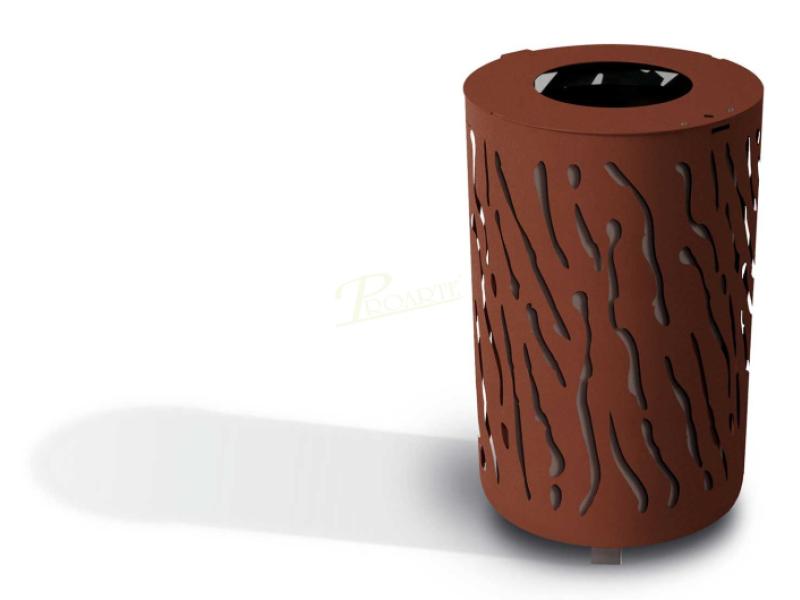 Papelera metálica fabricada en acero y chapa acabado pintado sobre galvanizado, formada por cubeta circular y tapa con cierre.