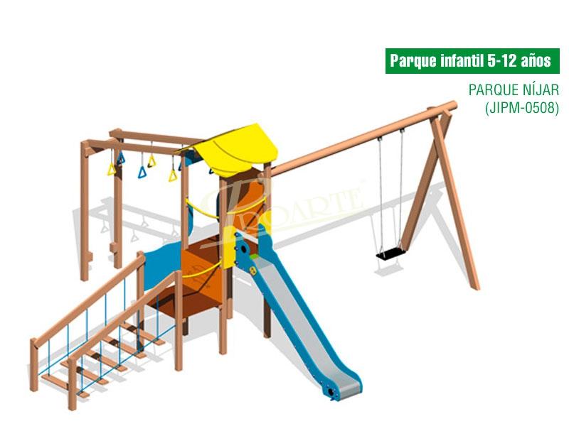 Fabricado en madera y madera laminada tratada en autoclave clase IV o acero galvanizado, carrocero, polietileno, acero pintado al polvo.