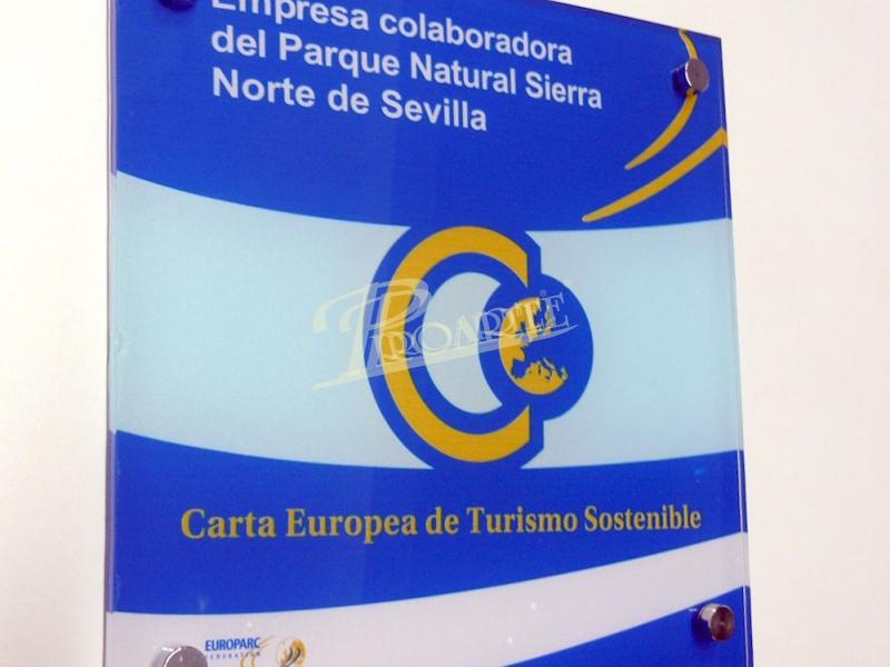 Placa fabricada en policarbonato rotulado a una cara con vinilo polimérico laminado UV y con protección anti-grafitti.