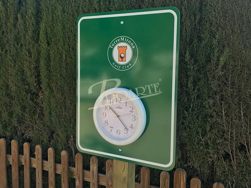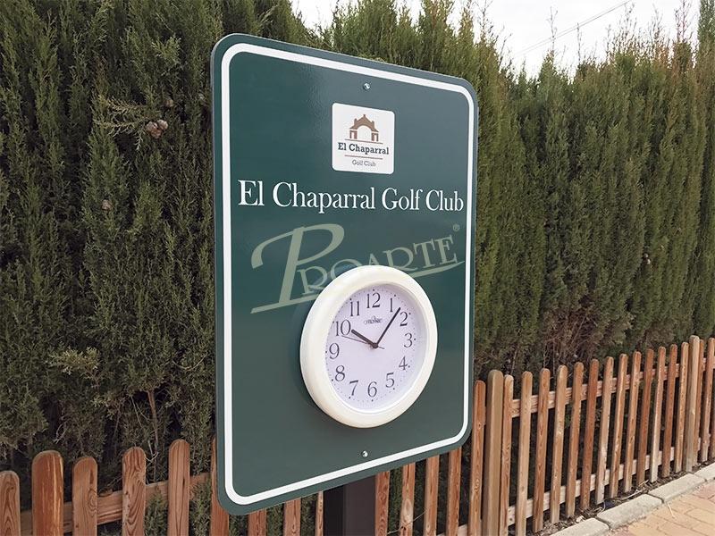 Cartel personalizado fabricado en placa de resinas termo-endurecidas y rotulado a una cara con vinilo polimérico laminado UV y con protección anti-grafitti.