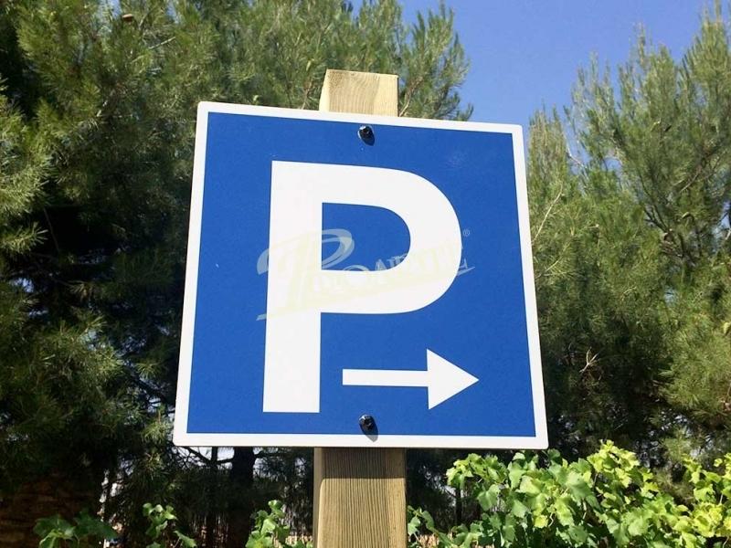 Señal de tráfico de placa de resinas con impresión en vinilo
