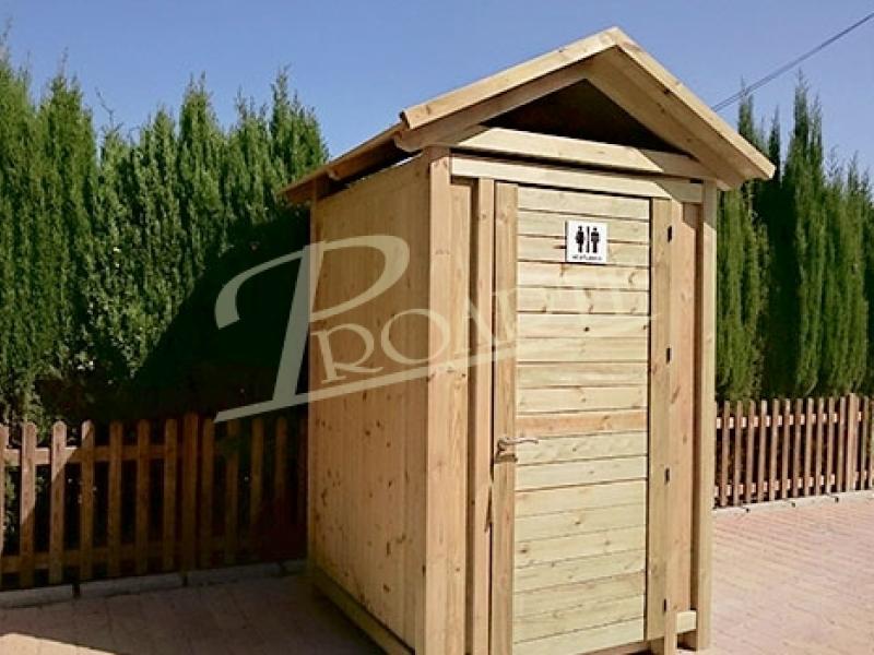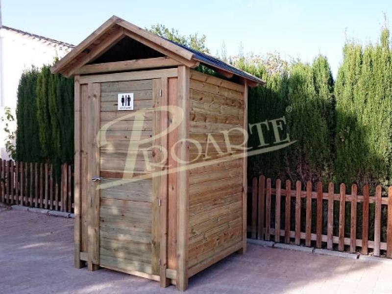 Vestidor fabricado en madera para exteriores tratada riesgo IV. Estructura protegida con tejadillo a dos aguas.